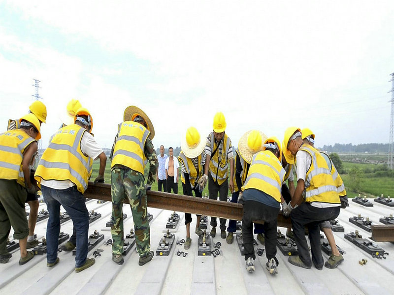 參建者克服高溫天氣以頑強(qiáng)的斗志奮戰(zhàn)在鋪軌一線