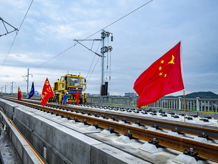 7月17日鋪軌進(jìn)入3標(biāo)鐵家沖特大橋畫面