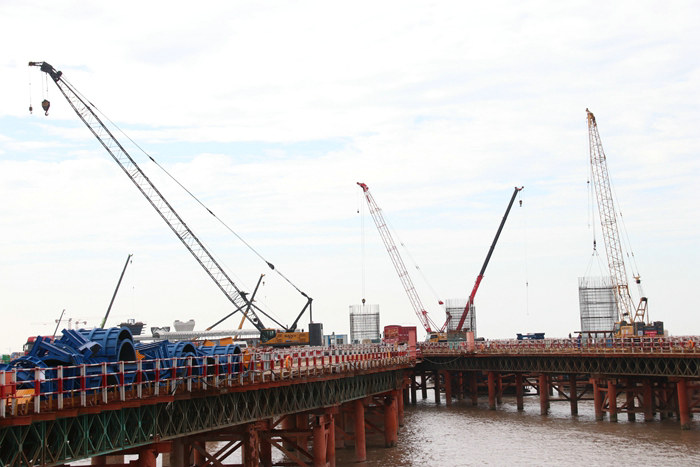 為了員工的安全,27日上午,公司副總工程師兼杭甬項(xiàng)目負(fù)責(zé)人黃偉帶領(lǐng)有關(guān)人員對(duì)濱海高架橋和濱?;ネㄗ屑?xì)檢查一遍,確認(rèn)具備復(fù)工條件。下午2點(diǎn)多,組織各施工隊(duì)伍進(jìn)場(chǎng),棧橋、樁基、承臺(tái)、墩身、鋼筋籠加工等各工序作業(yè)全面恢復(fù)。