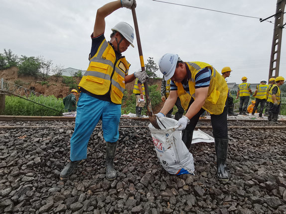 隴海鐵路鞏義段受暴雨天氣影響嚴重,自7月22日起,通號電氣化局鄭鐵公司所屬洛陽指揮部、三門峽指揮部、鄭州指揮部、鐵路立交指揮部、南陽指揮部及公司機關搶險力量扎根現場,協助鄭州局集團公司開展搶險工作,公司黨委領導參與指揮并慰問搶險作業(yè)人員,累計派出搶險人員750人次,工程機械十余臺次,黨員突擊隊、青年突擊隊突擊奉獻,對隴海鐵路鞏義至穆溝區(qū)間里程K624+000至K625+000、K632+300至K634+500等多處水害嚴重區(qū)段進行路基填筑、淤泥清運、道砟填補、供電桿基礎補強等作業(yè),緩解了鐵路部門搶修壓力,于7月27日搶通隴海鐵路鞏義至穆溝段上行線。