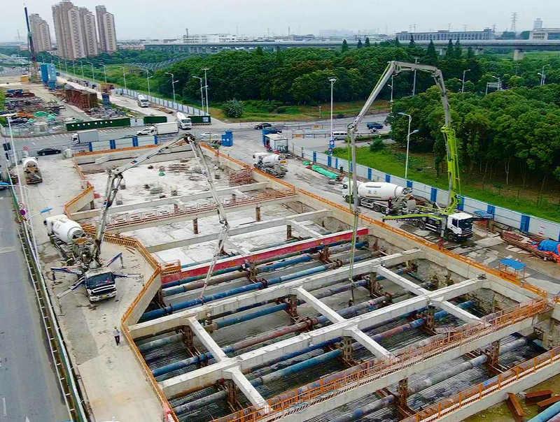此次澆筑方量大,澆筑工程中天氣多變。項目部為確保澆筑過程平穩(wěn)、有序推進,特意編制了針對梅雨季節(jié)施工的詳細施工方案,嚴(yán)格落實安全技術(shù)交底工作和質(zhì)量安全管控,科學(xué)統(tǒng)籌規(guī)劃,合理安排工序,通過增加泵車,砼罐車,搗固設(shè)備及人力資源投入等方式,全力保證本次混凝土澆筑。 經(jīng)過項目部現(xiàn)場管理人員和施工人員連夜鏖戰(zhàn),實現(xiàn)了一階段主體結(jié)全面完成,標(biāo)志著主體結(jié)構(gòu)施工全面進入了下半段賽程。
