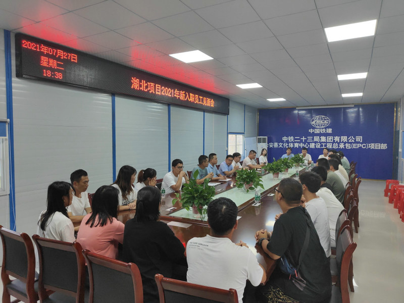 7月27日,公司公安文體中心項目部召開2021屆新分配大學生入職湖北項目見面會,歡迎新員工的到來,并做好相關安頓工作。