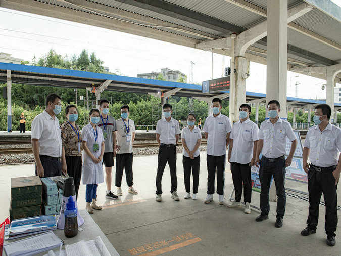 中鐵三局線橋公司黃黃項(xiàng)目浠水鋪軌基地志愿者慰問(wèn)浠水車站防疫工作者