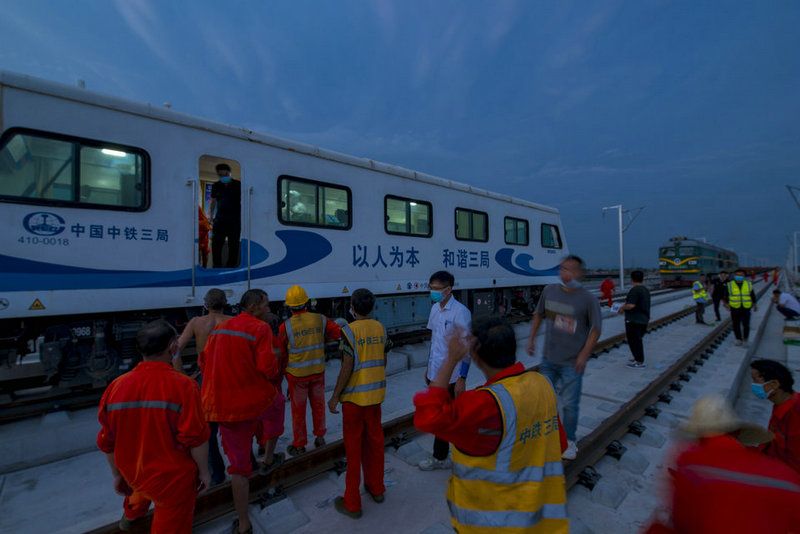 中鐵三局線橋公司黃黃鐵路項(xiàng)目核酸檢測專列到達(dá)黃黃鐵路鋪軌現(xiàn)場檢測點(diǎn)