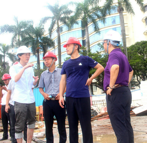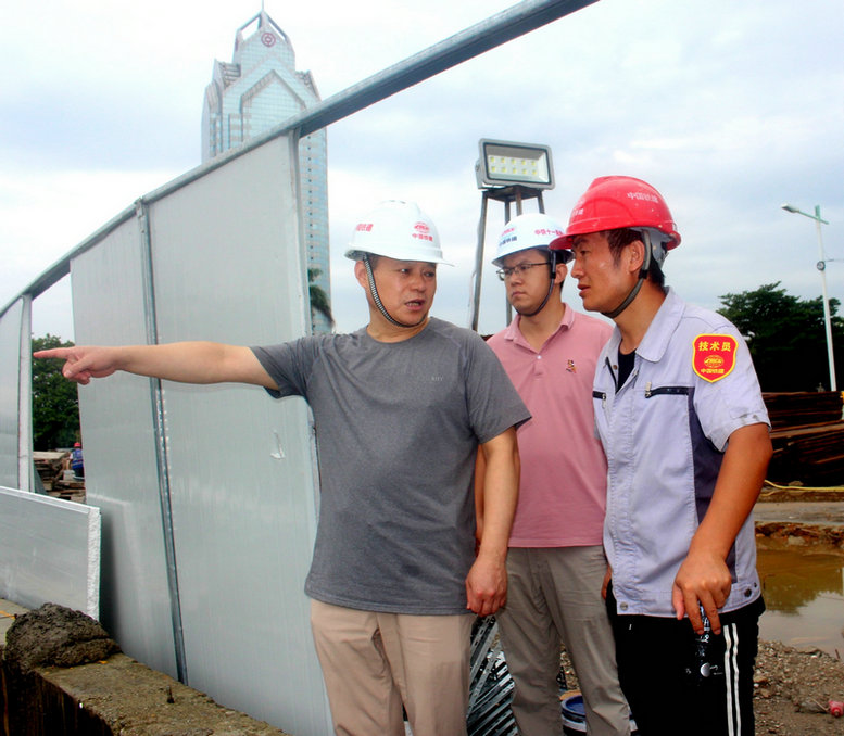項目經(jīng)理李兵(左2)每天深入現(xiàn)場,做好巡查、督導(dǎo)、管控、防汛,協(xié)調(diào)等工作,及對解決施工中出現(xiàn)的困難和問題,確保施工生產(chǎn)安全優(yōu)質(zhì)有序穩(wěn)步推進(jìn),節(jié)點計劃目標(biāo)逐個實現(xiàn)。
