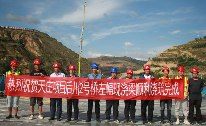 施工人員祝賀完成現澆梁施工