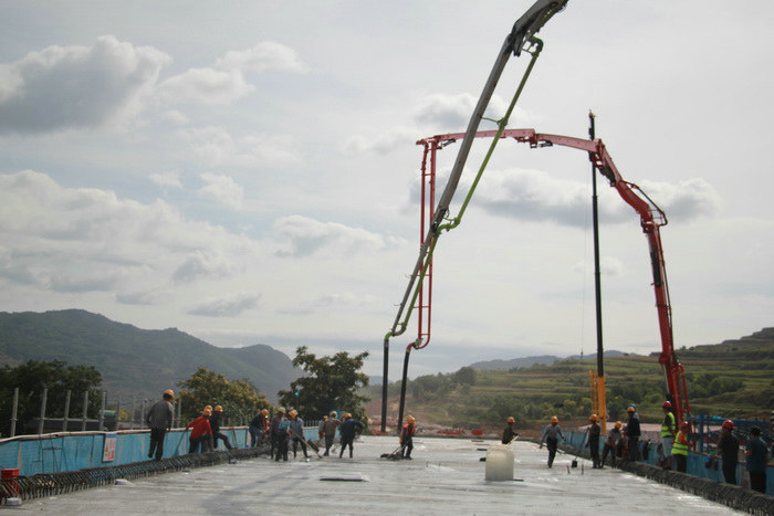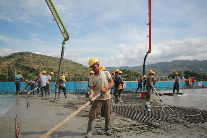 圖為澆筑混凝土施工