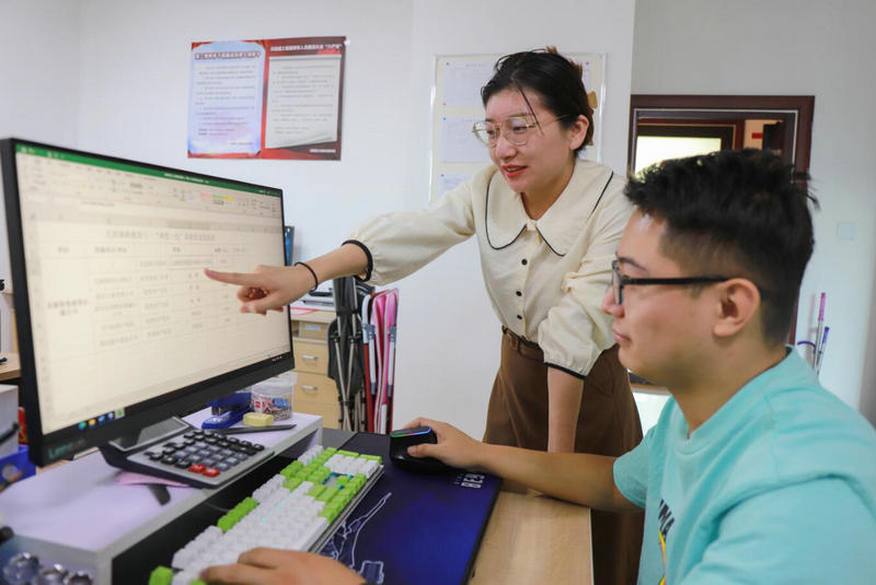 圖:北新投資公司機(jī)關(guān)會計(jì)王超男正在給徒弟宋曉康講解財(cái)務(wù)報(bào)表知識