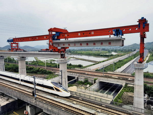 項目部采用雙線單線兩套架梁作業(yè)系統(tǒng),克服了工期緊、任務(wù)重、運(yùn)距遠(yuǎn)、多隧道穿行等諸多困難,特別是單線梁架設(shè)上跨既有寧杭高鐵和申嘉湖高速公路、臨近宣杭鐵路運(yùn)架梁、大坡道架梁等一系列高風(fēng)險工況和技術(shù)難題,為施工生產(chǎn)形勢帶來了嚴(yán)峻的挑戰(zhàn),對此項目部認(rèn)真落實領(lǐng)導(dǎo)帶班制度,全天候盯控提、運(yùn)、架梁現(xiàn)場施工,保證運(yùn)梁通道暢通,及時排查安全隱患,強(qiáng)化施工作業(yè)過程控制,保障措施落實到位。全體參戰(zhàn)職工攻堅克難、連續(xù)奮戰(zhàn),確保了總工期目標(biāo)的順利實現(xiàn),安全優(yōu)質(zhì)高效完成了全部架梁施工任務(wù)。