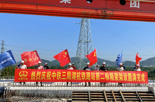 9月23日,在妙西線路所安全線中橋施工現(xiàn)場,隨著架橋機(jī)將最后一榀32米單線箱梁穩(wěn)穩(wěn)落在1#—2#墩上,標(biāo)志著中鐵三局線橋公司承建的湖杭項目全線架梁施工全部完成,湖杭鐵路建設(shè)取得階段性進(jìn)展,為后續(xù)無砟軌道施工奠定了堅實基礎(chǔ)。