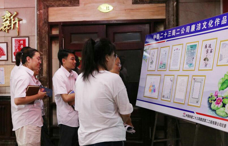 在中秋、國慶雙節(jié)即將到來之際,為貫徹落實(shí)上級紀(jì)委中秋、國慶期間緊盯“四風(fēng)”問題、持續(xù)正風(fēng)肅紀(jì)的通知精神,中鐵二十三局集團(tuán)二公司舉辦了廉潔文化作品展,展出書法、剪紙、征文、漫畫、攝影等作品70余幅,進(jìn)一步弘揚(yáng)中國共產(chǎn)黨廉潔自律、艱苦奮斗的精神,引導(dǎo)廣大黨員干部增強(qiáng)廉潔從業(yè)意識,帶頭遵守黨紀(jì)企規(guī),筑牢不想腐的思想堤壩。