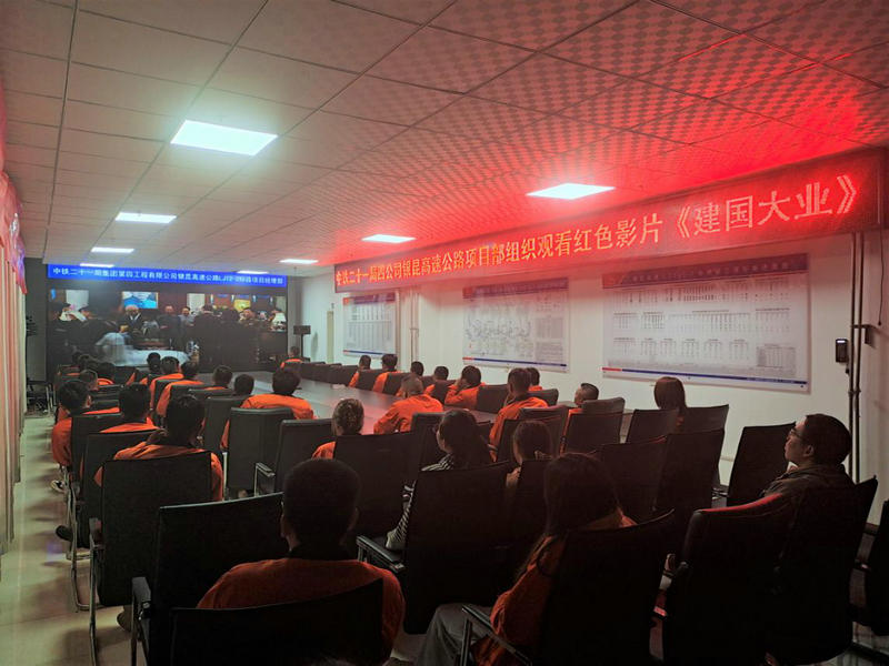為積極引導(dǎo)全體黨員干部職工共同回顧黨史,增強(qiáng)宗旨意識(shí),進(jìn)一步了解建國(guó)歷史、弘揚(yáng)愛(ài)國(guó)主義精神。9月23日,中鐵二十一局銀昆高速公路項(xiàng)目部積極組織全體黨員干部觀看紅色電影《建國(guó)大業(yè)》。