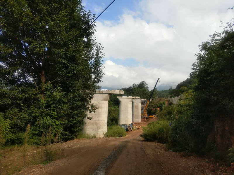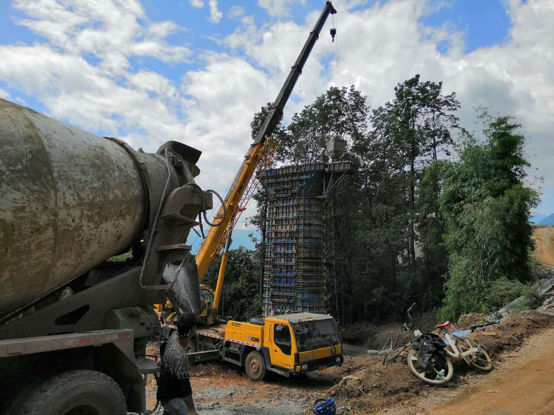 6號墩施工階段正是麗江地區(qū)的雨季,陰雨連綿,給大橋施工帶來了很大困難。但為確保工期質(zhì)量和施工進(jìn)度,員工們凝心聚力,團(tuán)結(jié)拼搏,不畏艱難,頂風(fēng)冒雨,利用一切可以利用的施工時間,加快施工速度,確保質(zhì)量安全和混凝土澆筑質(zhì)量。大家克服了每天在雨中工作的各種難題,尤其是便道泥濘、腳手架濕滑和模板運(yùn)輸安裝困難等不利因素,僅用2個多月時間,就安全順利完成了6號墩施工,使6號墩施工比原計(jì)劃提前4天順利封頂,保證了該大橋主體工程全部安全順利完工。
