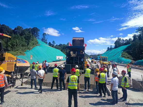 目前,項目部參建人員鏖戰(zhàn)“秋老虎”,克服工期緊、任務(wù)重、節(jié)點目標(biāo)和質(zhì)量要求高等特點,大干快上,全力以赴,以“大干120天”勞動競賽為契機(jī),迅速打開施工局面,在全體參建人員的共同努力下,提前實現(xiàn)了水穩(wěn)層攤鋪節(jié)點目標(biāo),為后續(xù)水穩(wěn)層大面積攤鋪提供了有利條件。