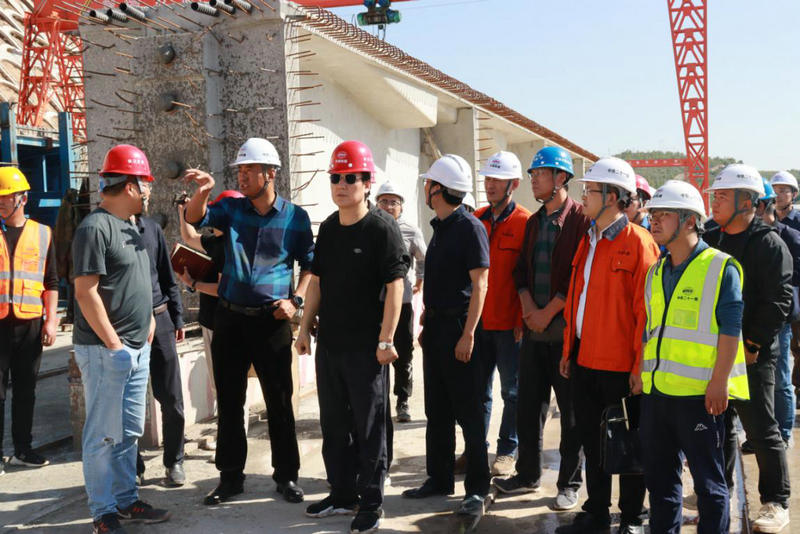劉虎軍一行詳細聽取了項目施工進度、文明施工、安全質(zhì)量、計劃安排部署等情況的匯報,并到任灣茹河特大橋、制梁場施工現(xiàn)場具體查看了項目總體推進進度、文明施工等情況。