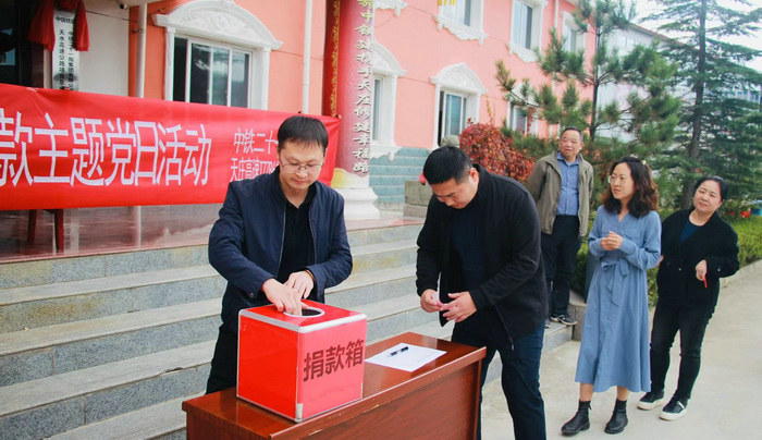 圖為員工們獻(xiàn)愛心捐款 10月16日,項(xiàng)目黨支部、團(tuán)支部在工作群里發(fā)出了向何娟同志伸出援助之手的倡議書。