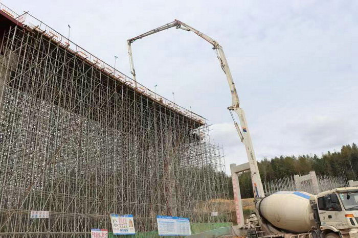 圖為澆筑混凝土施工 沖刺節(jié)點(diǎn),搶抓工期。面對工期緊、任務(wù)重、料源緊張的實(shí)際,項(xiàng)目部班子不等不靠,優(yōu)化施工組織方案,全盤統(tǒng)籌,科學(xué)部署,迅速配齊施工機(jī)械和人力資源,超前籌備材料。在工期緊張的金字牌樞紐互通,充分利用人機(jī)資源,倒排工期,強(qiáng)化鋼箱梁安裝和現(xiàn)澆梁施工,采取架設(shè)、現(xiàn)澆、焊接、運(yùn)輸施工管理等平行施工方法,力爭點(diǎn)面全面推進(jìn)互不干擾,利用例會分析工期計(jì)劃進(jìn)展情況,及時召開關(guān)鍵節(jié)點(diǎn)和節(jié)點(diǎn)部位專項(xiàng)施工方案會,研討施工方案并完善方案的科學(xué)性和可操作性,為快速推進(jìn)節(jié)點(diǎn)施工提供技術(shù)支撐。目前金字牌樞紐互通施工進(jìn)度不斷加快,A、D匝道鋼箱梁焊接全部完成,柏溪鋼板組合梁左幅提前鋪設(shè)架通,水穩(wěn)攤鋪底基層已鋪設(shè)4620米,路基順利移交,D匝道現(xiàn)澆梁第一節(jié)澆筑完成,路基段水穩(wěn)基層攤鋪整體推進(jìn)按業(yè)主要求如期完成2750米,在國慶期間業(yè)主對此進(jìn)行檢查時給予了好評,并表揚(yáng)為全線樹立了標(biāo)桿和榜樣,起到了樣板引路的作用。