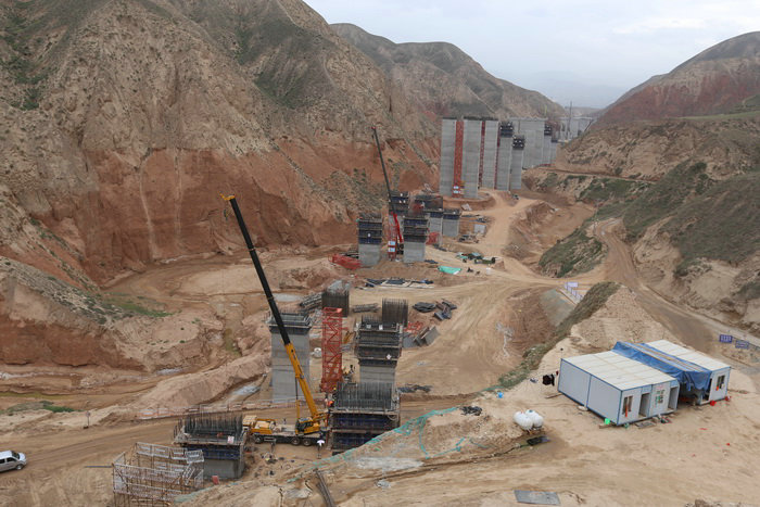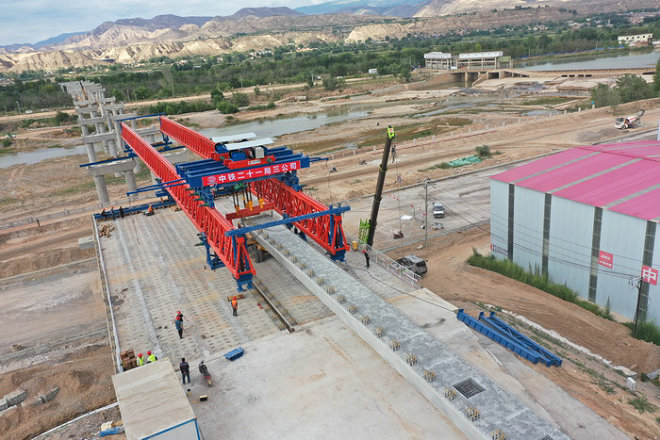 圖為洮河大橋架設甘肅省最長的波紋鋼腹板鋼混鋼箱梁