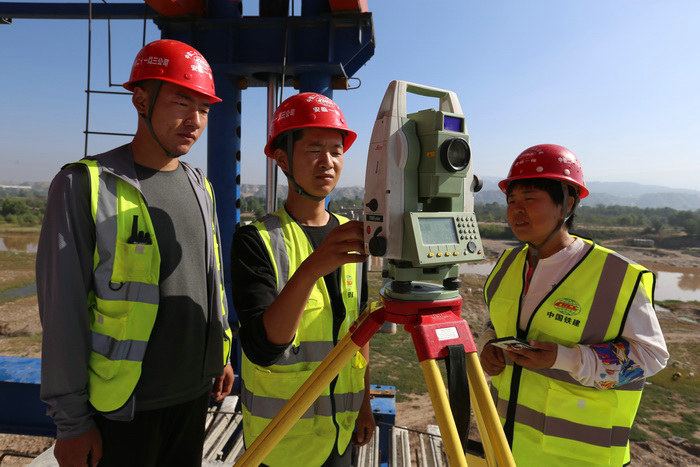 今年8月24日上午,當長50米、重達235噸的波紋鋼腹板鋼混組合箱梁,分毫不差穩(wěn)穩(wěn)地架設在安臨一級公路洮河大橋上時,在現(xiàn)場見證甘肅省此類最長橋梁架設的設計院、業(yè)主、總監(jiān)辦等相關領導,對建設者精湛的技藝報以熱烈的掌聲。而在橋上操作測量儀器指揮精準落梁的就是中鐵二十一局三公司安臨項目部測量班班長馮亞妹。