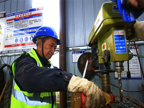 隨后,筆者通過與綜合隊(duì)隊(duì)長樊小兵的交談中再次了解到,其實(shí)地鐵項(xiàng)目機(jī)械班的任務(wù)十分繁瑣,它涵蓋了溜槽機(jī)具加工安裝,機(jī)械設(shè)備維修保養(yǎng),施工接線接電,鋪軌工裝改造維修以及場內(nèi)大大小小幾十種機(jī)具配件的加工生產(chǎn)等事情。另外在遇到機(jī)械設(shè)備故障時(shí),更是要保證24小時(shí)隨叫隨到,人員不多,但工作著實(shí)繁重。