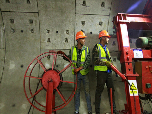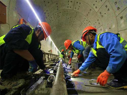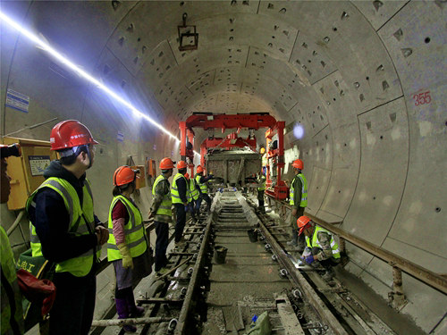 ?。ㄗT帥)10月27日凌晨時分,城市的萬家燈火逐漸熄滅,但中鐵一局集團昆明地鐵2號線項目部的施工工地上卻燈火通明,轟鳴陣陣,40余名作業(yè)力量正在隧道內(nèi)忙著進行混凝土澆筑、道床預(yù)鋪等施工任務(wù)。