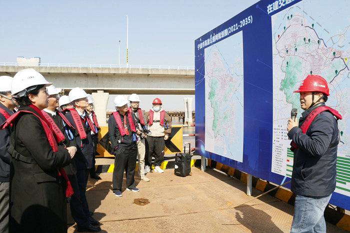 寧波市人大常委會副秘書長兼辦公廳主任伊敏芳、社會建設工委主任盧葉挺,市人大城建環(huán)資委委員、市城建設計研究院有限公司董事長、總經(jīng)理王紀躍,市人大常委會城建環(huán)資工委副主任李紅國,市人大代表、浙江華展工程研究設計院有限公司黨委書記、總經(jīng)理何國平,寧波市政府副秘書長、辦公廳二級巡視員余偉平,寧波市交通局局長胡海達、市住建局局長陳壽旦,寧波軌道交通集團黨委書記、董事長楊蔚,寧波交投控股集團黨委書記、董事長張春波,以及杭甬復線寧波一期高速公路有限公司黨委書記兼董事長葉楠、常務副總經(jīng)理楊光、副總經(jīng)理楊成安、監(jiān)理公司總監(jiān)章華鋒、中鐵十五局集團二公司副總工程師兼杭甬項目 負責人黃偉等陪同。