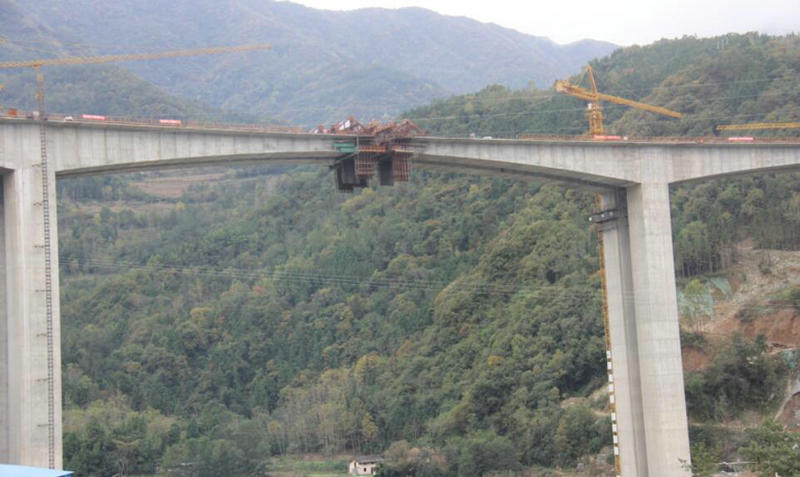 大坪涪江特大橋位于綿陽(yáng)市平武縣古城鎮(zhèn)大坪村,是廣平高速公路全線跨度最大、最高的連續(xù)剛構(gòu)橋。該橋左線橋長(zhǎng)932m,右線橋長(zhǎng)918m,單幅橋?qū)?2m,最高橋墩81m,主墩為7*8m的薄壁空心墩,機(jī)械設(shè)備和模板投入量大,精確度要求高,施工難度較大。在合攏段施工“攻堅(jiān)”開(kāi)始前,該項(xiàng)目部就技術(shù)、質(zhì)量、安全進(jìn)行細(xì)致交底,落實(shí)領(lǐng)導(dǎo)帶班干部值班制度,提前測(cè)量記錄近期氣溫變化,認(rèn)真評(píng)估并確定澆筑時(shí)段。按照“技術(shù)+質(zhì)量+安全+物資+現(xiàn)場(chǎng)”原則細(xì)化責(zé)任分工,全程盯控澆筑步驟。在澆筑過(guò)程中,嚴(yán)格把控混凝土澆筑質(zhì)量,從材料檢查到振搗層層審驗(yàn);澆筑完成后,及時(shí)規(guī)范操作養(yǎng)護(hù)作業(yè)。