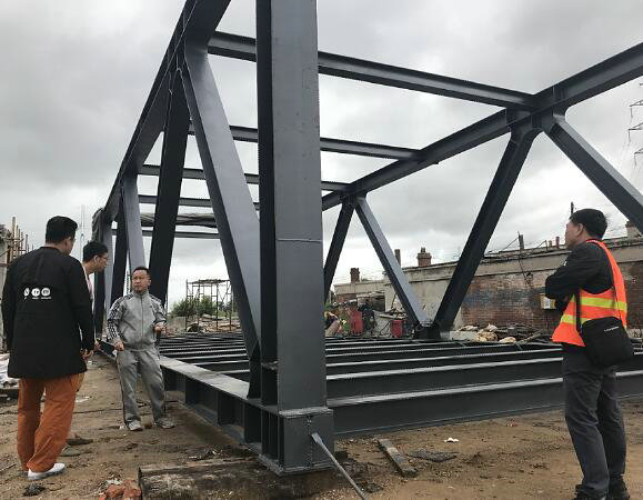 目前齊富項目部K1+289.7公里人行天橋已進入后半段施工階段,鋼桁梁也運至施工現(xiàn)場附近的鋼筋場地,電焊工也在按部就班的進行上懸桿及下懸桿的焊接工作,項目經(jīng)理李勝臣、項目副經(jīng)理孫喜剛、房建工區(qū)負責人張勇及公司實驗室人員在鋼筋場地查看鋼桁梁的焊接情況,同時在現(xiàn)場研究下一步鋼桁梁架設(shè)施工安排。另外人行天橋的引橋部分,施工工人正在安裝安全欄桿,雖然天氣不佳,但是施工現(xiàn)場的熱情依然高漲。