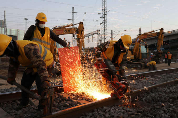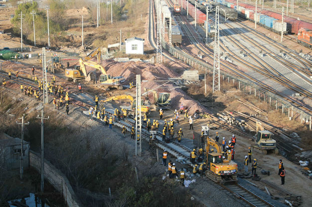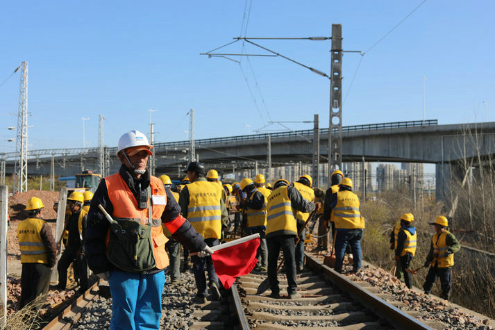 5時(shí)許,寒風(fēng)蕭瑟、明月高懸,在封閉網(wǎng)外,施工人員已經(jīng)完成點(diǎn)前安全教育,整齊列隊(duì)等待調(diào)度命令下達(dá);7時(shí)許,隨著駐站聯(lián)絡(luò)員誦讀當(dāng)日施工命令,施工負(fù)責(zé)人帶領(lǐng)施工人員完成入網(wǎng)登記,快速奔赴各自工作崗位,一時(shí)間人聲鼎沸、機(jī)械轟鳴,極目遠(yuǎn)眺,一輪朝陽在天邊微微露頭,似乎也關(guān)注著施工現(xiàn)場(chǎng)的點(diǎn)滴進(jìn)展;7時(shí)27分,鋸軌、擺放滑軌、道岔橫移一氣呵成;8時(shí),線路撥移到位;8時(shí)40分,道岔縱移就位,岔前連接、岔后配軌同步開始;9時(shí)36分,軌道連接完成,電務(wù)、接觸網(wǎng)專業(yè)開始進(jìn)行設(shè)備調(diào)試;12時(shí)整,現(xiàn)場(chǎng)完成開通前檢查確認(rèn),報(bào)駐站聯(lián)絡(luò)員正點(diǎn)銷記,線路開通。在5小時(shí)的施工過程中,各專業(yè)配合默契;管理人員認(rèn)真負(fù)責(zé),各司其責(zé)緊盯每一處重點(diǎn)要害;施工人員不畏艱苦,頂著寒風(fēng)完成了本次施工。
