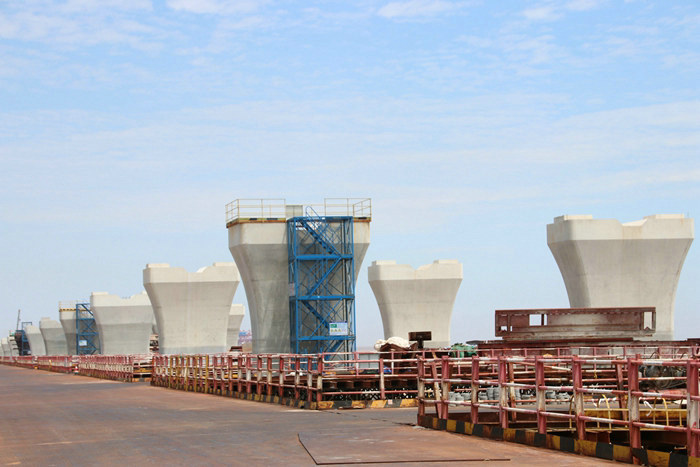 杭甬項(xiàng)目濱海高架和濱?;ネüこ淌呛I献鳂I(yè),既有幾層樓高的連續(xù)梁、80多米高的塔吊、20米左右的墩身高空作業(yè),也有焊接牛腿、安裝底板、承臺(tái)立模和綁扎鋼筋籠的臨水施工,都有潛在危險(xiǎn)。冬季施工,每天施工人員與鋼筋、鋼模、護(hù)筒、鋼管、角鋼、鋼板、設(shè)備打交道,在低溫下,這些“鐵家伙”的溫度更低,手觸摸一下十分冰涼。每天兩次潮汐,潮水上漲速度快,幾分鐘時(shí)間便漫過(guò)承臺(tái),稍不留神,遇上8級(jí)以上大風(fēng),一個(gè)大浪就能把人卷進(jìn)海里。針對(duì)項(xiàng)目冬季安全
