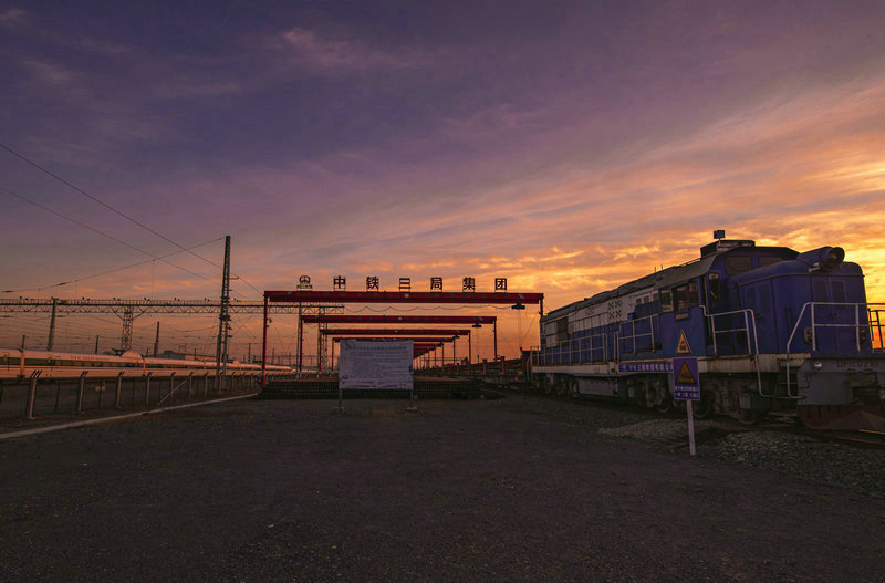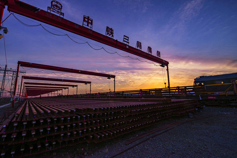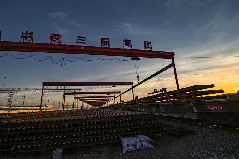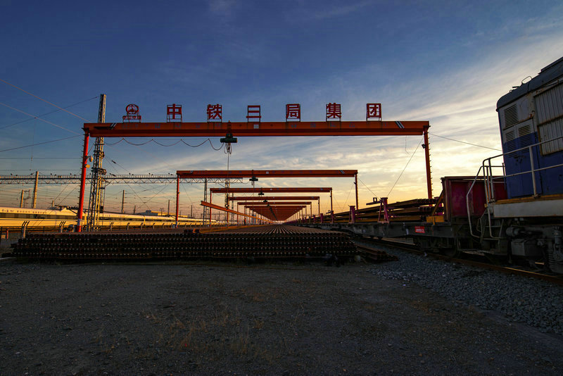 夕陽下東津鋪軌基地作業(yè)忙2021年10月10日鄭萬高鐵湖北南段正式開始鋪軌。其中正線鋪軌414公里,到巴東北站結(jié)束。據(jù)現(xiàn)場裝卸長軌負(fù)責(zé)人張傳罡介紹,運(yùn)輸長鋼軌裝車最關(guān)鍵的是鎖定,我們參建員工加強(qiáng)自身管理,不斷探索創(chuàng)新,進(jìn)行信息化管控,制定長鋼軌運(yùn)輸加固方案,每套鎖定裝置需要6根拉桿緊固,將鋼軌夾緊,防止鋼軌竄動(dòng)。并研發(fā)工程線行車調(diào)度管理系統(tǒng),在長大隧道內(nèi)加設(shè)基站,對長軌列車及人員的時(shí)間、空間進(jìn)行全面掌控,確保長軌運(yùn)輸及鋪軌施工安全。
