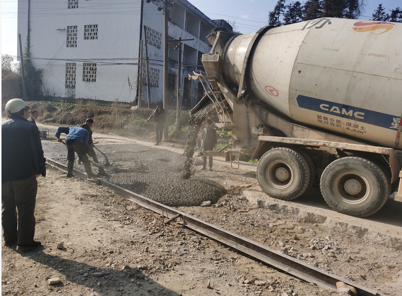 承建祁婺高速A1標(biāo)及全線路面施工的中鐵二十一局三公司祁婺項(xiàng)目部領(lǐng)導(dǎo),了解到當(dāng)?shù)卮迕竦倪@一困難后,立即展開多方協(xié)調(diào)溝通,實(shí)地踏勘破損路面,制定施工方案。很快,項(xiàng)目部調(diào)來了路面清理設(shè)備和渣土運(yùn)輸車,將原有破損路面清理干凈。并隨即展開整平、輾軋、底基層鋪筑和路面混凝土攤鋪施工。調(diào)動(dòng)了廢料清運(yùn)車3臺(tái),7臺(tái)罐車,2臺(tái)挖機(jī),2臺(tái)鏟車,1臺(tái)震動(dòng)壓路機(jī),工人70余人,齊齊上陣。不到一周,便將這條長(zhǎng)700多米,寬4.5米,厚約25cm的混凝土“愛心路”展現(xiàn)在了村民面前,因此中鐵二十一局三公司成了村民眼中的“貼心人”。