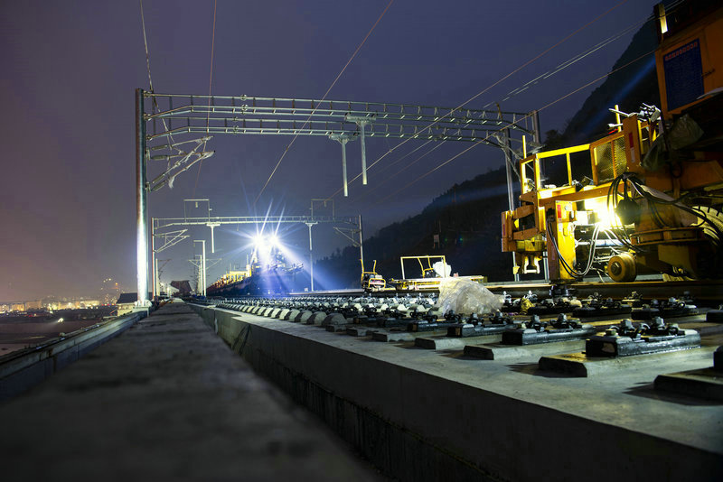 湖北襄陽訊 12月10日凌晨2時許,隨著WZ-500型長鋼軌鋪設(shè)牽引車將兩根500米長鋼軌緩緩?fù)铣龇€(wěn)穩(wěn)落入承軌槽內(nèi),標志著由中鐵三局線橋公司承擔鋪軌與軌道線路放散鎖定和鋼軌無縫焊接任務(wù)的鄭萬高鐵ZWZQ-2標右線鋪軌進入興山車站,繼續(xù)向著標段鋪軌終點站巴東北站推進,同時也意味著年內(nèi)南漳、???、神農(nóng)架、興山、巴東將徹底告別無高鐵歷史,宜昌興山、恩施巴東等地居民的高鐵出行網(wǎng)絡(luò)將更豐富。