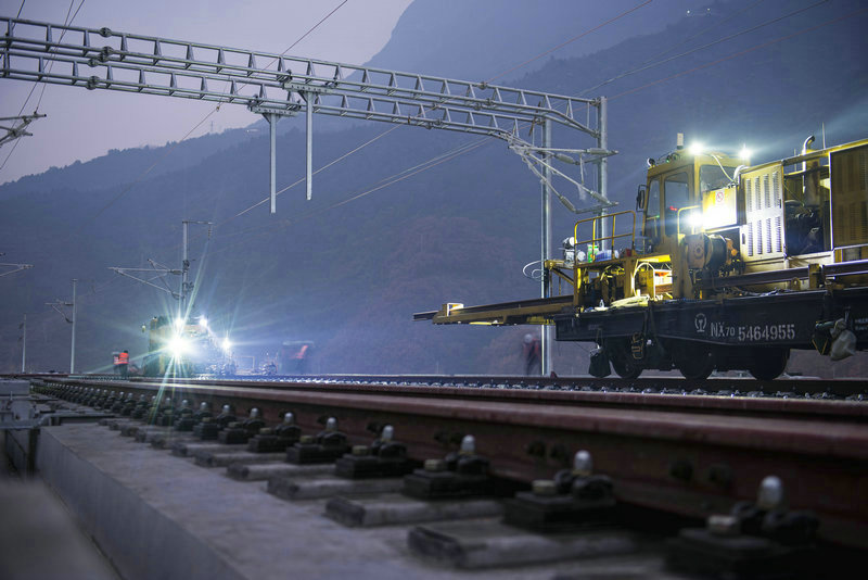 中鐵三局鋪軌施工車進入興山站