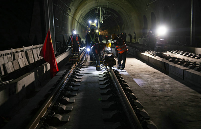 中鐵三局鋪軌作業(yè)人員在施工中