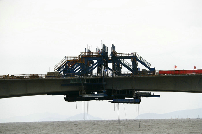 為了確保安全、優(yōu)質(zhì)高效地完成連續(xù)梁建設(shè)任務(wù),該項(xiàng)目部從多家有海上橋梁施工經(jīng)驗(yàn)的投標(biāo)單位中篩選出兩家單位負(fù)責(zé)連續(xù)梁88墩和89號墩共34節(jié)段(塊)掛籃施工。對進(jìn)場材料,堅(jiān)持做6次檢驗(yàn),每一組數(shù)據(jù)都必須達(dá)標(biāo),不符合標(biāo)準(zhǔn)的鋼材不準(zhǔn)進(jìn)入?;炷劣蓛勺笮桶韬险炯屑庸ず凸?yīng),從源頭杜絕了不合格品。其次,除現(xiàn)場監(jiān)理、業(yè)主挑毛病外,該項(xiàng)目部加強(qiáng)全過程工序監(jiān)督指導(dǎo),推行安全質(zhì)量獎(jiǎng)罰制度,每月對監(jiān)管連續(xù)梁施工的副經(jīng)理、技術(shù)人員、專職安全員進(jìn)行考核,優(yōu)者重獎(jiǎng),劣者重罰,將橋梁施工與個(gè)人利害得失緊緊捆綁在一起,形成壓力和動(dòng)力并存,責(zé)任與擔(dān)當(dāng)同在的激勵(lì)機(jī)制。