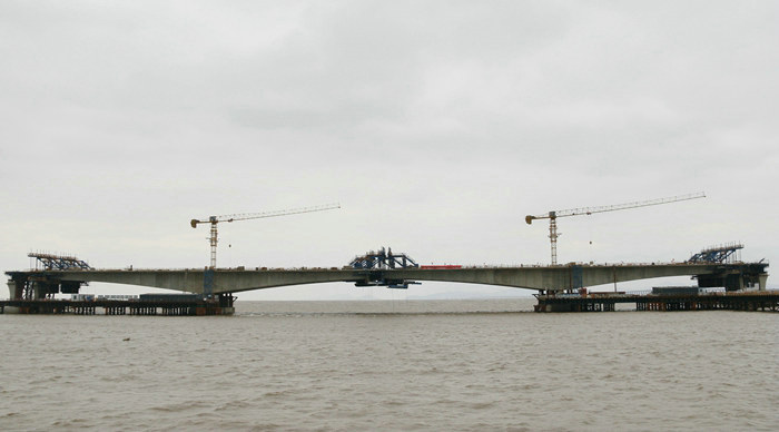 本網(wǎng)訊(呂奎元 王志琴) 12月25日下午5點(diǎn),中鐵十五局集團(tuán)杭甬項(xiàng)目濱海高架橋橫跨直徑4.5米輸油管道連續(xù)梁左幅17號塊與右幅17號塊完美對接,標(biāo)志著海上唯一一座連續(xù)梁順利合攏,打通連接濱海高架與濱?;ネ芰和ǖ?。