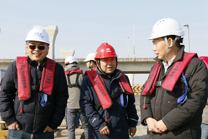 下午1點半,陳繼禹總經(jīng)理驅(qū)車來到規(guī)模很大的杭甬復(fù)線濱?;ネ⒔皇┕がF(xiàn)場,查看了樁基、承臺、墩柱等建設(shè)情況。公司副總經(jīng)理兼杭甬項目負(fù)責(zé)人黃偉匯報了濱海高架主體工程完美收官、連續(xù)梁邊跨最后一節(jié)段即將完工,以及濱?;ネ℅匝道橋架梁、施工安全質(zhì)量、完成承臺和墩身數(shù)量等情況。目前,濱?;ネㄟM展順利,從樁基到上部橋墩,均按照施工計劃有步驟地穩(wěn)步推進。聽完黃偉的匯報,陳繼禹很高興。他說:“中鐵十五局有較強的履約能力,我對S3合同段的安全質(zhì)量和進度與環(huán)保是滿意的。”針對項目施工情況,他提出三點要求:一是年關(guān)將至,安全工作一定要高度重視,高墩、樁基施工,要做好安全防護,不能有絲毫松懈,時刻繃緊安全之弦,發(fā)生一起事故,造成的經(jīng)濟和信譽損失不可估量,建筑行業(yè)這方面的教訓(xùn)深刻,要汲取,各級管理人員要加強監(jiān)督、檢查,寧當(dāng)惡人不當(dāng)罪人。只要責(zé)任到位、措施到位、認(rèn)識到位,施工生產(chǎn)就會平平安安。二是抓好現(xiàn)場管理,打造標(biāo)準(zhǔn)化工地,保持和發(fā)揚既有成績,克服工作中存在的不足,備用、待用材料堆碼整齊,棧橋干干凈凈,誰看了都舒服。三是做好疫情防控工作,寧波的疫情尚未消除,全國的疫情形勢不容樂觀,要管好隊伍,盡量減少人員外出,不要到人流集中的地方,鼓勵員工春節(jié)就地過年。