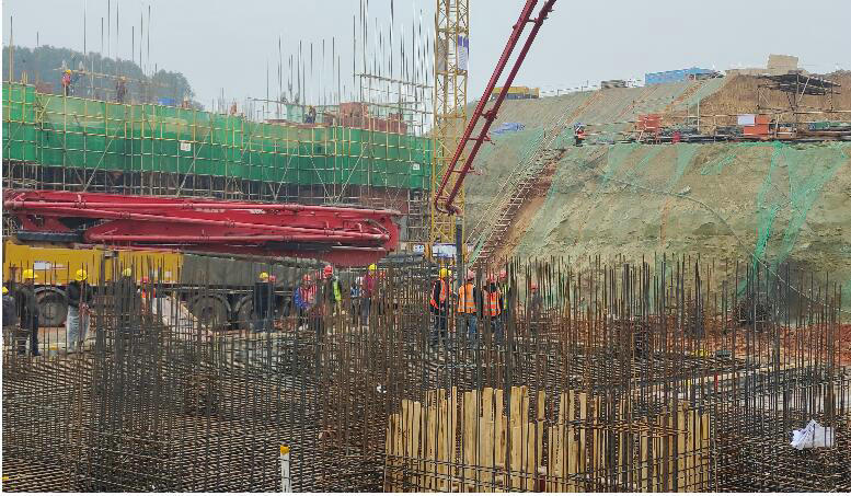 澆筑前,該項(xiàng)目召開(kāi)專(zhuān)題會(huì)議研討,對(duì)施工方案進(jìn)一步優(yōu)化調(diào)整,統(tǒng)籌人、材、機(jī)資源合理調(diào)配,在工序節(jié)點(diǎn)控制上仔細(xì)斟酌,組織全體施組人員進(jìn)行安全和施工技術(shù)交底,細(xì)致講解施工工藝與安全注意事項(xiàng),確保全員熟練掌握操作規(guī)范,同時(shí),全面檢查機(jī)械設(shè)備正常運(yùn)轉(zhuǎn)情況,指派專(zhuān)人負(fù)責(zé)聯(lián)系商砼站及供料車(chē)輛,嚴(yán)把進(jìn)場(chǎng)質(zhì)量關(guān)。澆筑過(guò)程中,項(xiàng)目技術(shù)管理人員全程24小時(shí)輪班駐守現(xiàn)場(chǎng),及時(shí)排查并解決出現(xiàn)的問(wèn)題,真正實(shí)現(xiàn)了安全質(zhì)量零脫控、生產(chǎn)組織零掉檔、現(xiàn)場(chǎng)秩序零紊亂,為澆筑的順利完成提供了保障,實(shí)現(xiàn)了澆筑過(guò)程中的銜接配合高效率、無(wú)失誤。