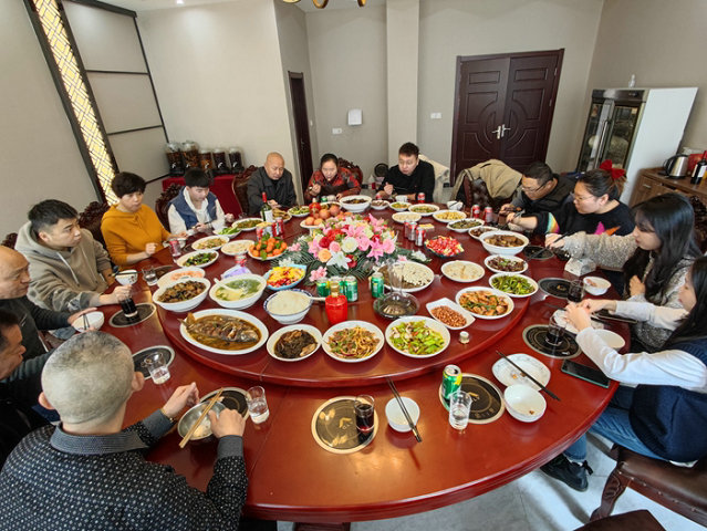 與此同時,項目部給員工發(fā)放水果、紅包,送去新春的祝福和關(guān)愛。項目部、施工隊包餃子、烹飪美味佳肴,將色香味俱全的菜品擺滿餐桌,員工們吃著香噴噴的的飯菜,喝著醉人的美酒,心里樂開了花,一張張笑臉,一句句互道祝福的話,給飲食文化注入了新的元素,置身于這情、這景,哪個員工不激動?圍坐在餐桌上來自五湖四海的員工人,真像一個團(tuán)結(jié)友愛、和諧幸福的大家庭。