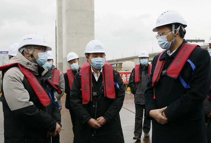 上午10點(diǎn)40分,邵文年一行來到杭甬項(xiàng)目濱?;ネㄖ行膮^(qū)域,首先查看了棧橋、承臺(tái)和墩身施工場(chǎng)面。隨后,項(xiàng)目黨支部副書記(主持工作)彭勇代表項(xiàng)目部匯報(bào)了春節(jié)期間不停工、125名員工留守工地、隊(duì)伍管理、工期、產(chǎn)值、安全、疫情防控,以及2月9日全面復(fù)工復(fù)產(chǎn)等情況。邵文年對(duì)該項(xiàng)目近期的工作給予充分肯定,他指出:“中鐵十五局堅(jiān)持節(jié)日施工,年后復(fù)工復(fù)產(chǎn)動(dòng)作快,工期意識(shí)、履約意識(shí)很強(qiáng),我感到高興。”針對(duì)濱?;ネㄊ┕みM(jìn)展情況和浙江省不容樂觀的新冠疫情形勢(shì),他提出4點(diǎn)要求:一是抓進(jìn)度。年底完成架梁目標(biāo),任務(wù)還很重,不能有松懈情緒和自滿自足思想,近幾天人員到齊了,要馬上掀起施工大干高潮,產(chǎn)值論英雄,月月完成計(jì)劃,后期沒壓力。二是繼續(xù)做好新冠疫情防控工作,這是當(dāng)前和今后一個(gè)時(shí)期的工作重點(diǎn),措施要到位,執(zhí)行要鐵面無私,員工的健康是頭等大事,疏忽大意會(huì)造成無法挽回的損失,誰也擔(dān)不起這個(gè)責(zé)任。三是抓施工安全要戒驕戒躁,要常思不講安全的危害,常敲事故警鐘,安全工作要天天抓、月月抓,不能有厭倦情緒,在項(xiàng)目沒干完之前,要時(shí)刻增強(qiáng)安全就是效益、就是信譽(yù)的意識(shí)。四是多開展一些活動(dòng),調(diào)動(dòng)員工的積極性、主動(dòng)性,將全員的思想統(tǒng)一到干好工程上來。
