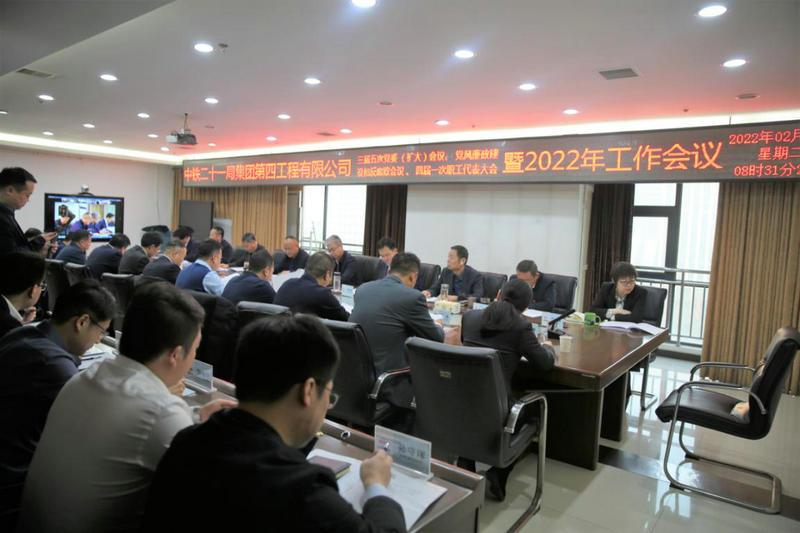 2月15日,在雄壯的國歌聲中,中鐵二十一局四公司三屆五次黨委(擴(kuò)大)會議、黨風(fēng)廉政建設(shè)和反腐敗會議、四屆一次職工代表大會暨2022年工作會議在西安勝利召開。會議深入貫徹落實黨的十九屆六中全會和股份公司、集團(tuán)公司2022年工作會議精神,全面總結(jié)了公司2021年各項工作成果,圍繞企業(yè)“十四五”高質(zhì)量發(fā)展目標(biāo)總要求,客觀分析了企業(yè)內(nèi)外部形勢,全面部署了公司2022年發(fā)展規(guī)劃,明確了公司2022年工作方針總路線。