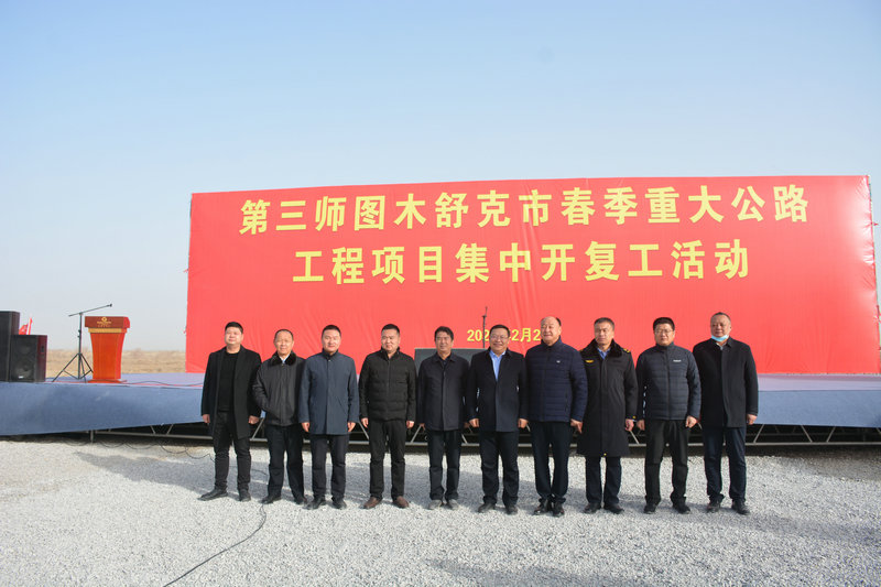圖木舒克訊(通訊員 梁毅)2月22日,第三師圖木舒克市交通運輸局2022年春季重大公路建設(shè)項目開復工儀式在圖昆公路第一合同段舉行。這標志著備受社會各界關(guān)注的第三師圖木舒克市—第十四師昆玉市公路項目(第三師段)正式開工建設(shè)。