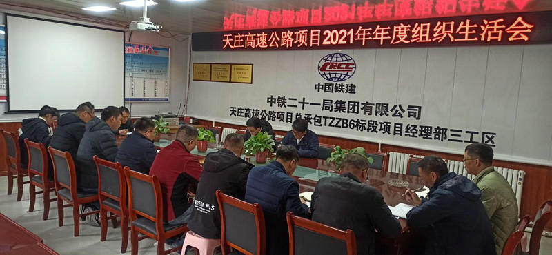 3月5日,中鐵二十一局四公司天莊高速公路項目黨支部召開了2021年度組織生活會,公司副總經理、總工程師黃君洲,總部運營管理部到會指導,項目全體黨員參加了會議。
