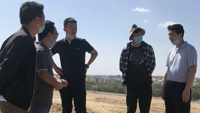 圖為王小慶在碎石場了解生產情況 針對肯尼亞兩個體建項目當前進展情況,王小慶提出要求:一是要理清施工總體思路。要按照“抓住重點、兼顧其他”工作思路,抓牢項目當前路基施工重心,整合資源優(yōu)勢,加快土方填筑,為后續(xù)瀝青攤鋪工序打開作業(yè)面。二是要優(yōu)化施工組織計劃。要做到方案計劃先行,合理配置人機料資源,統(tǒng)籌安排,精心組織施工,避免“人等機、機等料”的窩工浪費。三是要做好物資供應保障。要定期盤點庫存,及時掌握柴油、水泥、鋼筋、瀝青等主材庫存情況,緊缺材料超前謀劃,提前采購,做好材料供應保障工作。四是要確保安全有序生產??夏醽喆筮x將近,存在諸多不確定風險因素,要暢通信息渠道,加強與中國駐肯使館、肯政府、業(yè)主監(jiān)理等外部機構聯系,及時掌握動態(tài)信息,把握當地政治大局方向,提高突發(fā)事件應急處置能力,加強項目營地安保力量,確保安全生產。五是要做好疫情防控工作。當前海外疫情形勢仍然嚴峻,要堅持疫情防控常態(tài)化工作,勤戴口罩勤洗手,做好個人防護;要強化口罩、消毒液、酒精等防疫物品供應保障;要堅持全方位消毒,確保防疫不留死角、不漏盲區(qū),充分保證項目員工生命健康安全。六是要凝聚項目建設合力。項目全體職工要切實做到思想上同心、目標上同向、行動上同步,鉚足干勁,勁往一塊使,擰成一股繩,自覺擔負起工作職責,各部室相互協(xié)調配合,加快推進項目建設取得新進展,盡快實現項目主線全面通車目標。