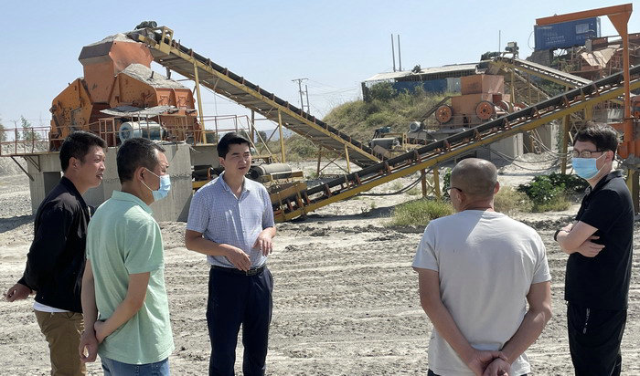 圖為王小慶(右一)在路基施工現場 最后,王小慶一行來到項目碎石場,還專門檢查了碎石生產情況。王總指出,在干好在建項目的同時,還要優(yōu)化經營結構,要充分發(fā)揮“人無我有”資源優(yōu)勢,錨定屬地料源緊缺現狀,大力開展混凝土、碎石生產、加工、銷售一體化業(yè)務,助推海外項目經營多元化轉型升級,打造“專精特新”項目品牌,真正發(fā)揮干好一個項目、帶動一片區(qū)域、開辟一方市場的良好效果,推動屬地項目滾動發(fā)展。