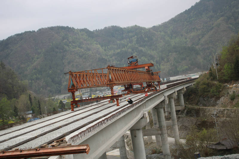 青川訊(通訊員 劉英華) 3月18日11時,在廣平高速TJ06合同段三清觀大橋施工現場,隨著最后一片長40米T梁、 124.7噸重的T梁緩緩平移至大橋右幅橋墩蓋墊石支座上,在場工人一片歡呼,該橋梁右幅順利貫通。