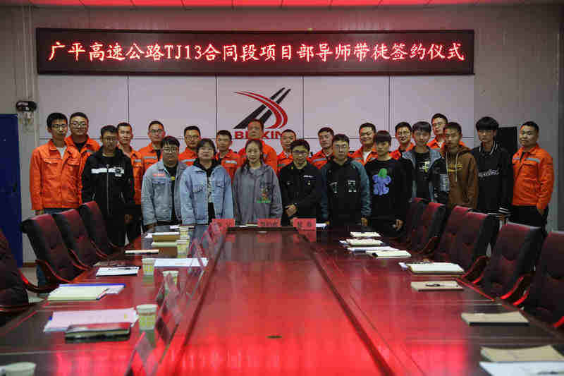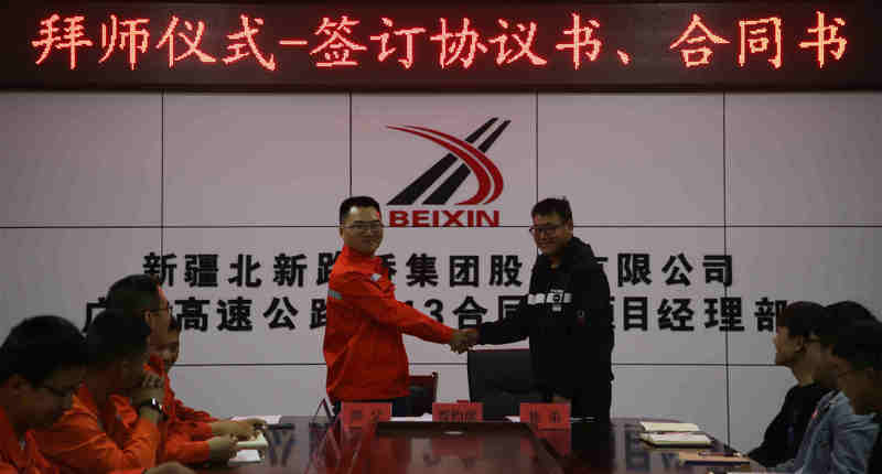 鐵路工程建設(shè)網(wǎng)訊 (通訊員 譚彩蓉)“凡學(xué)百藝,莫不有師”。3月23日晚,北新路橋集團(tuán)北新巖土公司廣平高速公路TJ13合同段項(xiàng)目部舉辦了2022屆導(dǎo)師帶徒簽約儀式,在全體職工的見證下簽訂協(xié)議書,延續(xù)“老帶新”、“傳幫帶”的傳統(tǒng),為加快人才培養(yǎng)步伐,增強(qiáng)企業(yè)發(fā)展后勁奠定堅(jiān)實(shí)基礎(chǔ)。