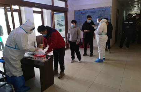 核酸檢測中 3月的哈爾濱咋暖還寒,此輪新冠疫情來勢兇猛。疫情的陰霾并沒能阻止瑞達公司生產(chǎn)的熱情及完成全年生產(chǎn)任務(wù)的決心。瑞達公司為了保證哈爾濱鐵路局2022年大修軌枕及哈爾濱地鐵3號線的地鐵枕供應(yīng),仍然堅持生產(chǎn)。在公司努力積極做好疫情防控工作的同時,疫情防控工作得到了哈爾濱市阿城區(qū)政府的大力支持,在政府的協(xié)調(diào)下,24日起哈爾濱阿城區(qū)疫情防控的兩名核酸采樣人員,每天為瑞達公司住宿40余名員工免費上門進行核酸采樣,為企業(yè)安全生產(chǎn)保駕護航。