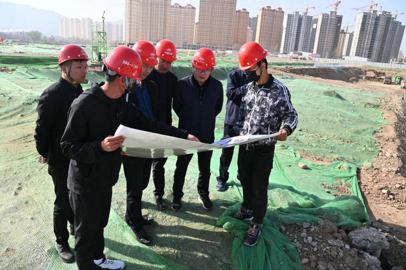 柳倉太、祁濤一行分別前往由臨夏工程公司承擔(dān)施工的迎曦公館、東郊公園—體育公園、城投睦府、黃河國家文化公園—牡丹公園、新華街地下停車場、道合未名府、伊和名苑、迎賓大道等項(xiàng)目檢查指導(dǎo)。